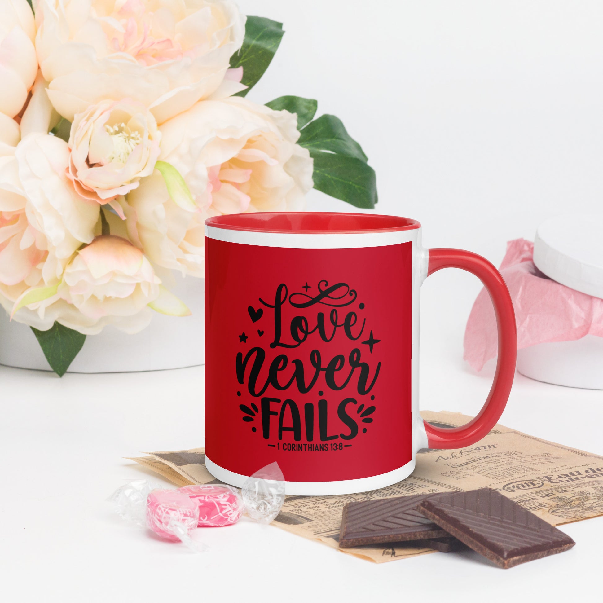 Love Never Fails Red Mug